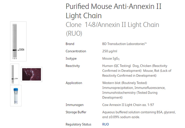 Purified Mouse Anti-Annexin II Light Chain